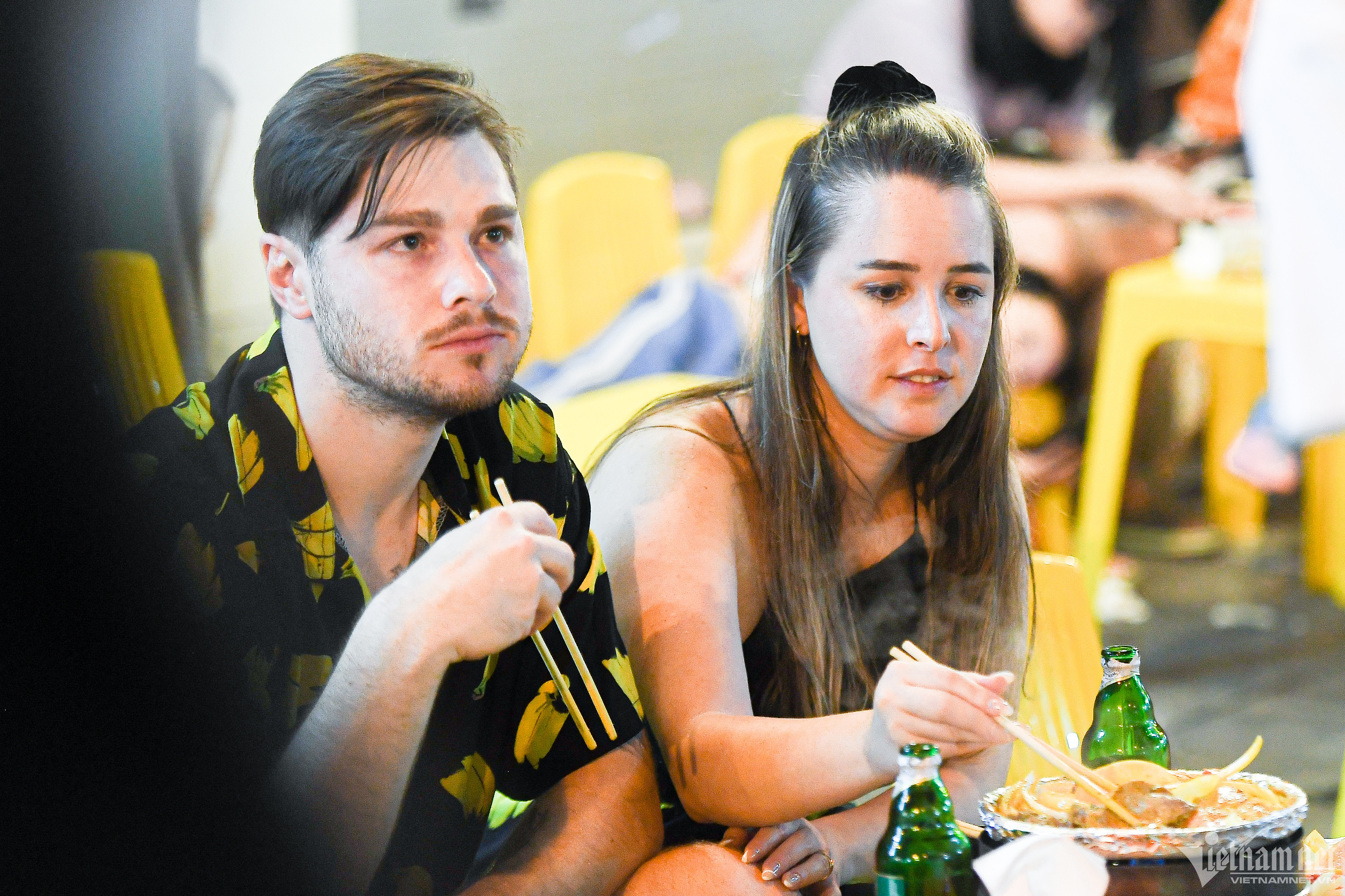 Ngày hôm sau, họ được nhân viên khách sạn gợi ý về phố Tạ Hiện - "con phố không ngủ" tại Hà Nội. Anh James và chị Talya hào hứng tới trải nghiệm. "Chúng tôi tới đây đúng tối ngày nghỉ lễ 30/4. Từ 19h30 con phố đã đông nghẹt người, các hàng quán kín khách, không khí nhộn nhịp, mang lại cảm giác khá giống những con phố đêm ở Hồng Kông. Đồ ăn ở đây ngon. Thế nhưng, các hoạt động vui chơi thì không phong phú và không gian chật hẹp quá", James chia sẻ.