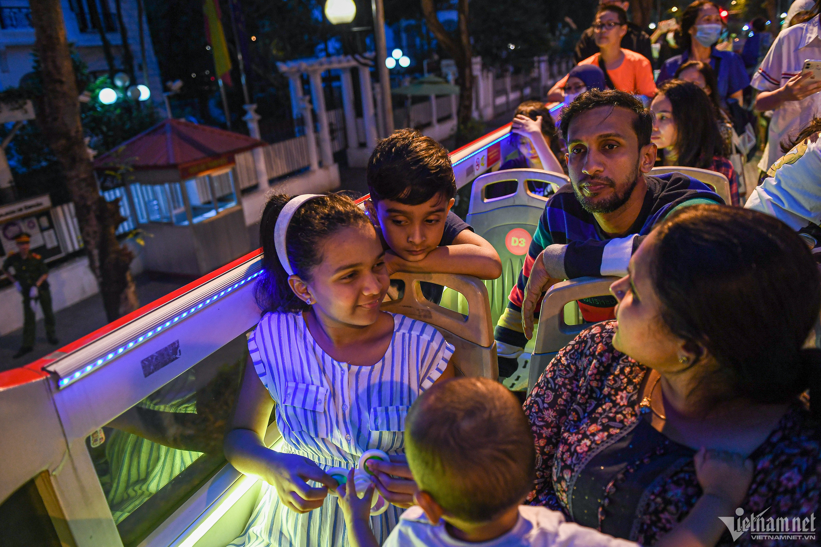 Vợ chồng anh Chindhu Salim (Ấn Độ) cùng 3 con nhỏ (9 tuổi, 6 tuổi và 1 tuổi) tới Việt Nam du lịch trong 6 ngày, trước khi tới Nhật Bản, Hàn Quốc. Anh Salim cho biết, anh rất ấn tượng với hình ảnh Hà Nội về đêm, khi thành phố lên đèn, vừa lung linh, sôi động, vừa cổ kính. Gia đình này rất thích tour buýt hai tầng tham quan Hà Nội buổi tối.