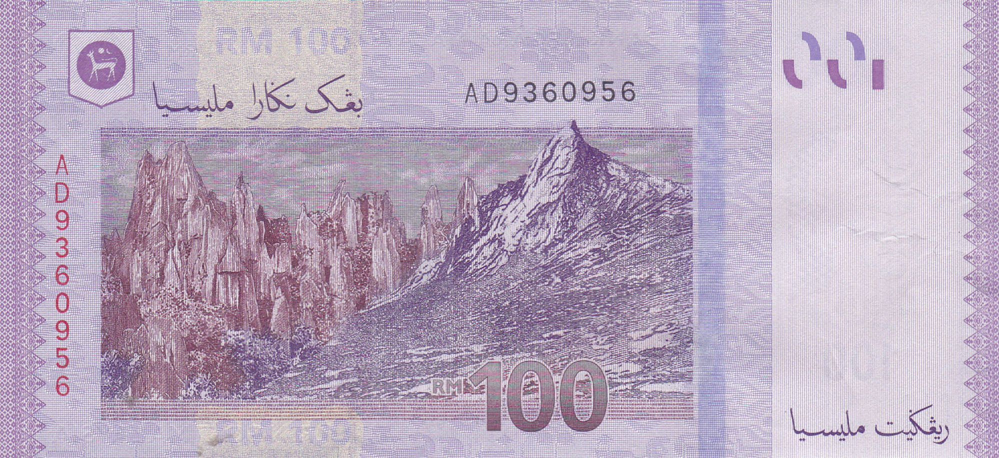 Ngân hàng Negara Malaysia cũng đã đưa hai di sản thế giới vào mặt sau của tờ 100 ringgit. Cả hai đều ở Borneo: Thứ nhất là công viên Kinabalu, ở Sabah, nơi có núi Kinabalu, ngọn núi cao nhất ở Đông Nam Á. Ngoài ra, bạn có thể ngắm nhìn đỉnh núi Mulu sắc như dao cạo trên núi Api sau khi vượt qua bao thử thách và vào công viên quốc gia Gunung Mulu, Sarawak.