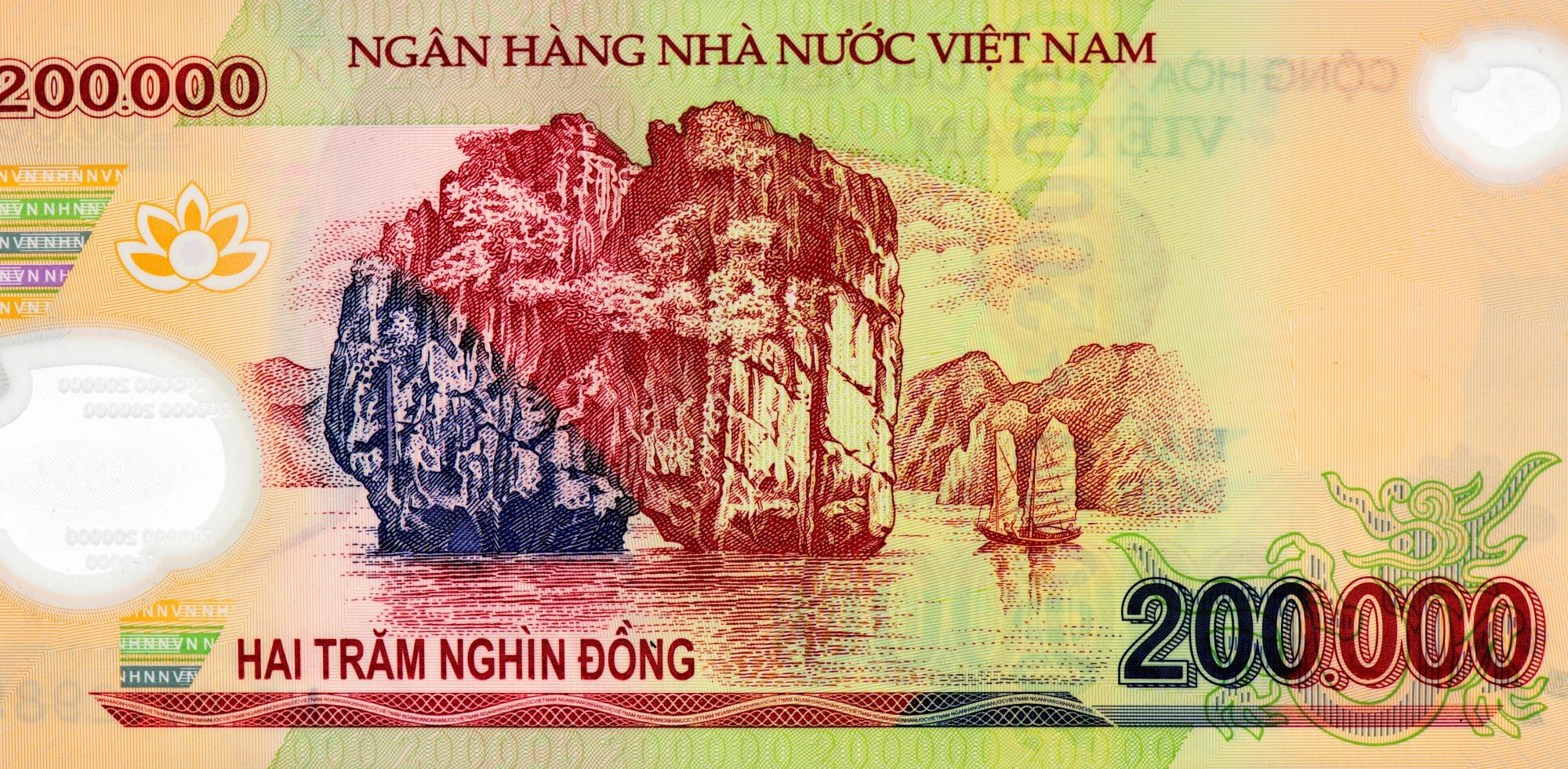 Chùa Cầu có từ thế kỷ 17 ở Hội An làm sinh động cho tờ 20.000 đồng, còn mệnh giá 200.000 đồng là hình ảnh các ngọn núi đá vôi ở vịnh Hạ Long, một trong tám di sản thế giới của Việt Nam.