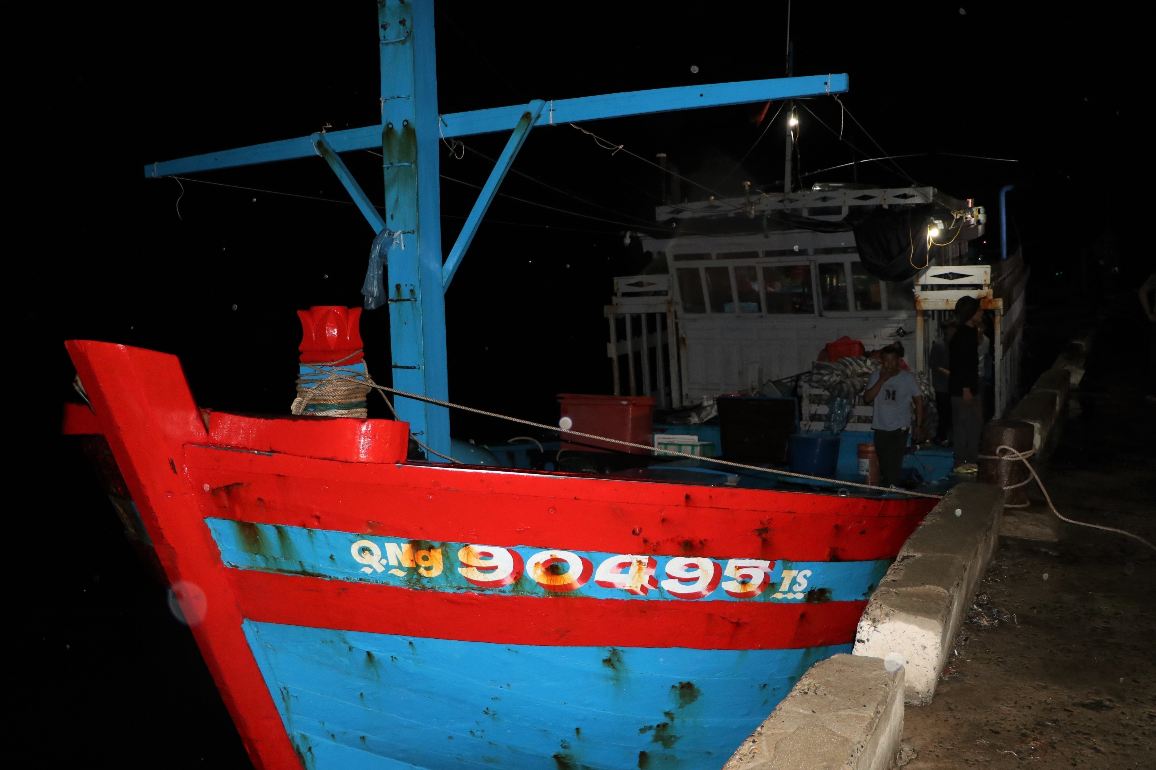 Tàu cá QNg 90495 TS do ông Huỳnh Văn Hoanh (43 tuổi), trú xã Bình Châu, huyện Bình Sơn, làm chủ. Tàu vừa trở về cảng Sa Kỳ, tỉnh Quảng Ngãi.