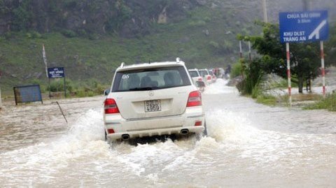 Hãy quan sát những chiếc xe đi trước, thân cây, vỉa hè... để đoán xem liệu chiếc xe của mình có thể lội qua được không. Hãy để ý và dự đoán vị trí bánh xe của mình sẽ lăn qua, liệu đã phải là chỗ nông nhất chưa, đường Việt Nam thường làm cao ở giữa và độ dốc khá lớn sang 2 bên.