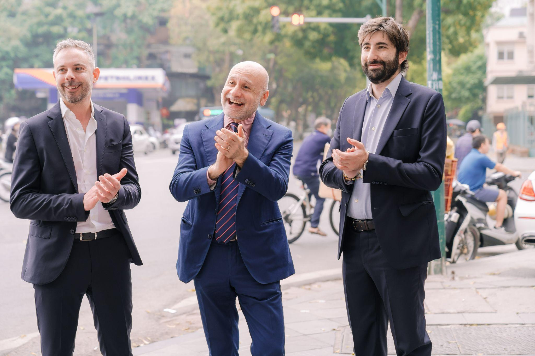 Buổi lễ khai trương có sự tham gia của Đại sứ Cộng hòa Italy tại Việt Nam - ngài Antonio Alessandro, đại diện thương hiệu Roncato từ Italy, đại diện Công ty TNHH thời trang KOS, NSƯT Chiều Xuân, Travel blogger Travip...