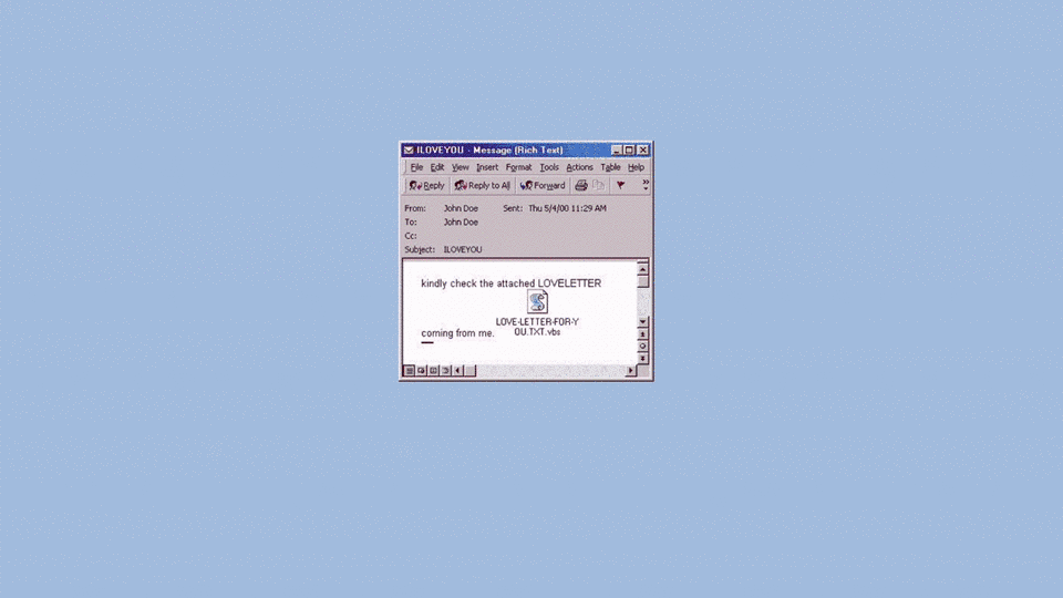 Hai mươi năm trước, vào ngày 4 tháng Năm năm 2000, người dùng Windows bắt đầu nhận được một email chứa một file mã độc. Chỉ trong vòng 10 ngày sau đó, khoảng 50 triệu báo cáo nhiễm mã độc này đã được thông báo và vào lúc đó, nó tương đương 10% máy tính kết nối internet trên toàn thế giới. Mã độc này chính là virus với cái tên thân thương ILOVEYOU.