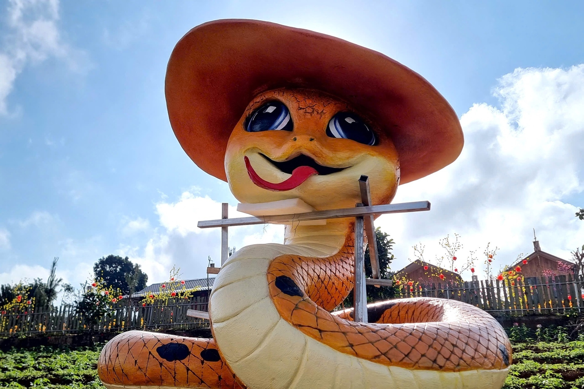 Hình ảnh linh vật rắn ở đường hoa Tết tại Đà Nẵng:
