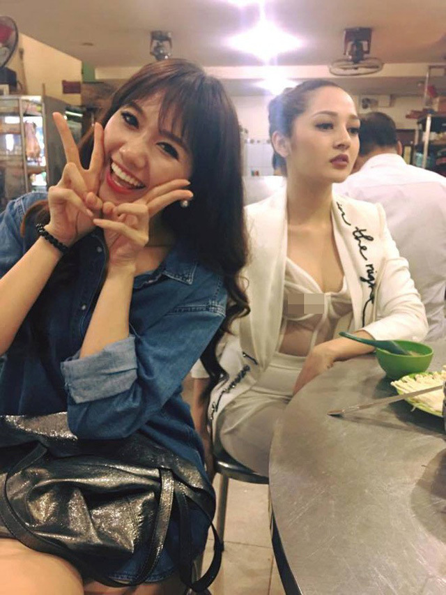| Trong tấm hình chụp chung với Hari Won, Bảo Anh để lộ thời trang có phần sơ suất. Bạn gái cũ Hồ Quang Hiếu vốn là người đẹp sở hữu vóc dáng nuột nà. Bảo Anh cũng được nhận xét là người có gu thời trang sành điệu. Tuy nhiên lần "mặc như không" này lại khiến cư dân mạng không khỏi bất ngờ. |