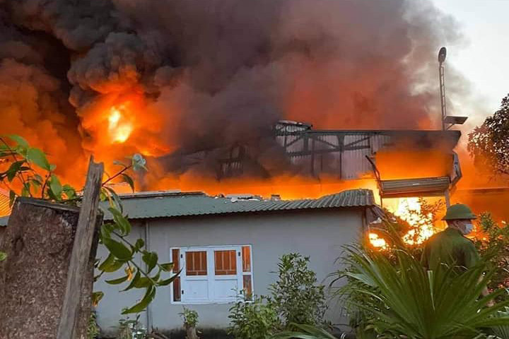 Theo đó, khoảng 4h sáng nay (29/8), ngọn lửa bốc cháy tại cơ sở sản xuất nhựa Vĩ Tuyến Plastic (Chi nhánh Công ty TNHH Thương mại Xuất nhập khẩu Vĩ Tuyến, tại thôn 5, xã Quảng Minh, huyện Hải Hà) rồi cháy lan khiến cơ sở sản xuất nhựa bị thiêu rụi hoàn toàn.