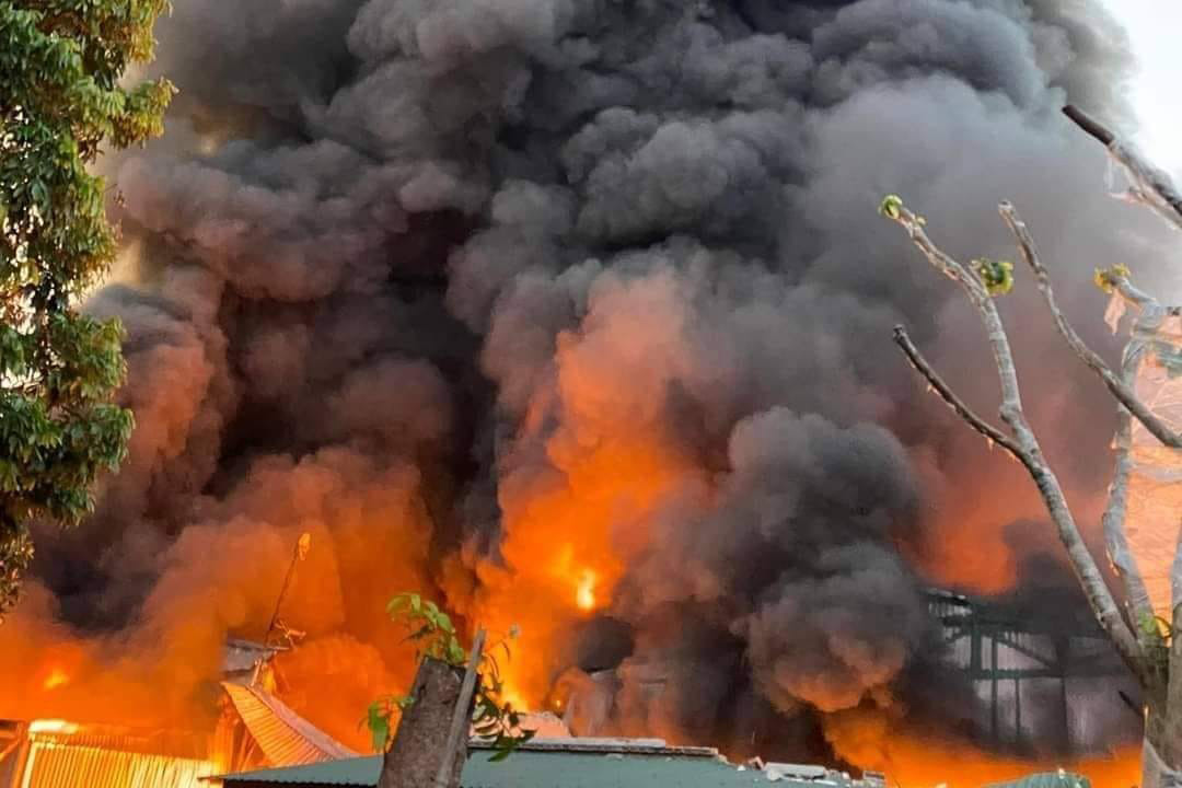 Lúc đầu ngọn lửa bốc cháy ở một khu vực nhỏ, sau đó cháy lan ra xung quanh, bao trùm toàn bộ khu xưởng, cột khói bốc cao nghi ngút cao hàng trăm mét.