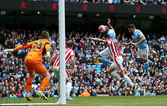 Stoke đang cố gắng vùng lên. Arnautovic xử lý khéo léo trong khu cấm địa rồi sút chân phải sấm sét buộc Joe Hart phải trổ tài.
