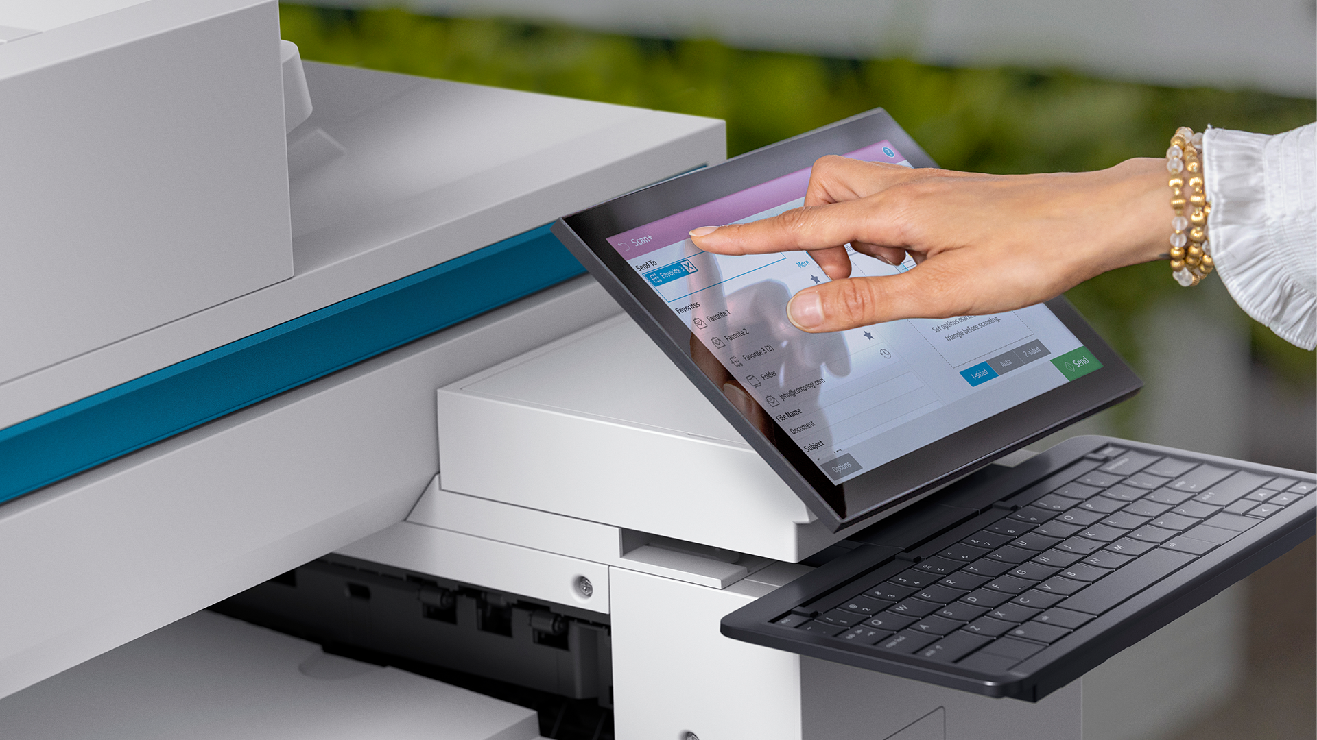 Thêm vào đó, một màn hình cảm ứng màu 10,1-inch và tùy chọn bàn phím kích thước chuẩn sẽ hỗ trợ tối đa các thao tác với tài liệu và chỉnh sửa bản scan ngay tại máy in. Người sử dụng còn có thể tùy chỉnh lệnh, sau đó gửi bản scan trực tiếp qua email, fax, SharePoint cho nhiều người nhận với yêu cầu cụ thể khác nhau hoặc in thành bản cứng. Việc photocopy, in và scan nhờ đó trở nên tiện lợi, thân thiện và hiệu suất hơn.