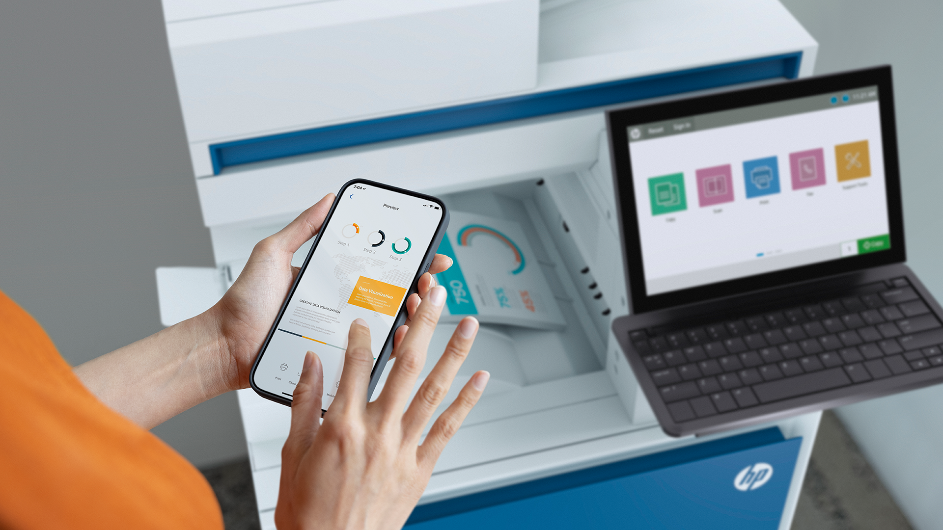 Bên cạnh đó, nền tảng ứng dụng HP Workpath kết nối với đám mây của sản phẩm này còn giúp doanh nghiệp dễ dàng tối ưu hóa quy trình in và scan theo nhu cầu hiện tại cũng như thay đổi để đáp ứng với nhu cầu của từng giai đoạn trong quá trình sử dụng.