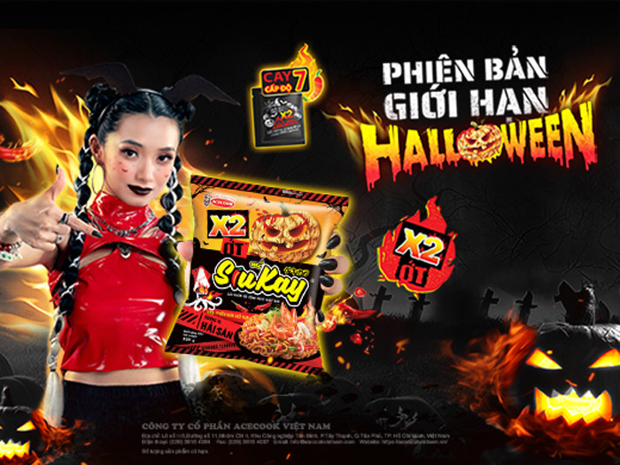 Năm nay, để đón mùa lễ hội Halloween, mì SiuKay ra mắt phiên bản giới hạn gói X2 ớt. Với phiên bản đặc biệt này, các bạn trẻ sẽ có cơ hội thử thách bản lĩnh ăn cay của mình khi mì được nâng cấp độ cay với gói ớt X2. Mì SiuKay sẽ là một lựa chọn đầy thú vị để các bạn trẻ thách thức nhau trong dịp Halloween.