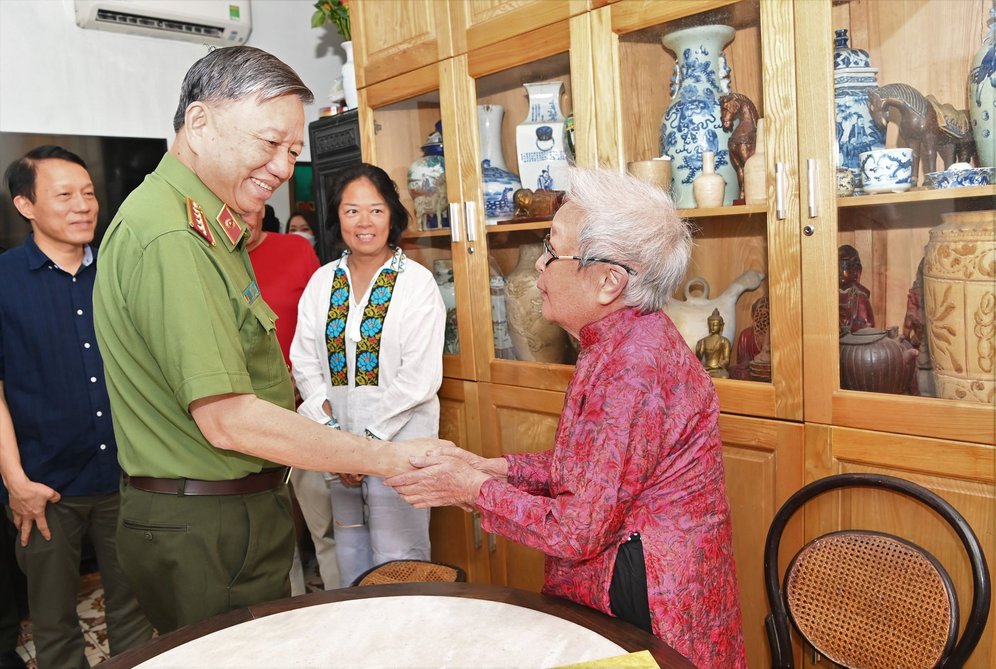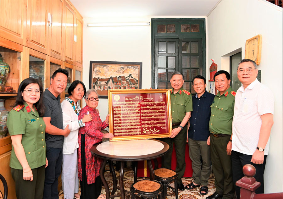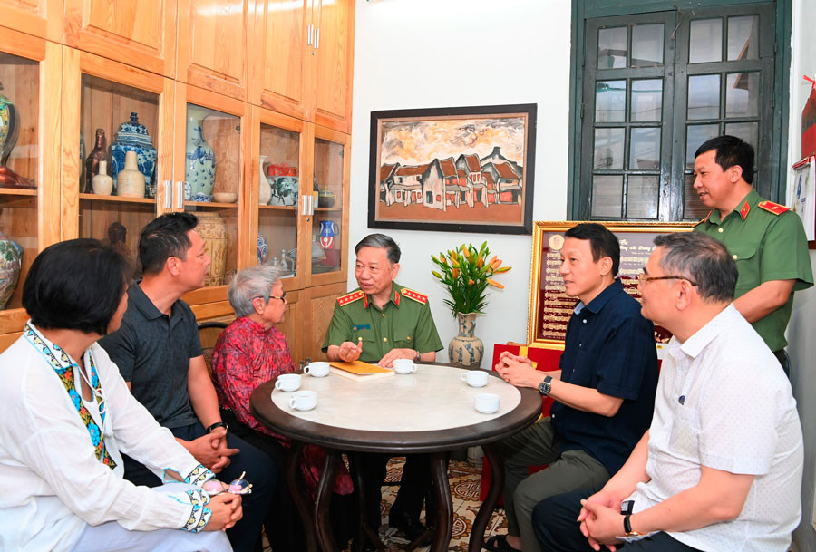 Bộ trưởng Tô Lâm cũng cho biết, Đảng, Nhà nước đã xác định văn hoá có vị trí quan trọng thứ 3 trong chiến lược bảo vệ Tổ quốc. Hiện nay, hoạt động văn hoá nghệ thuật trong lực lượng CAND đang được quan tâm đầu tư, phát triển. Đại tướng Tô Lâm cũng đã trân trọng cảm ơn nhạc sĩ Hoàng Vân đã có nhiều sáng tác, góp phần vào bảo vệ, xây dựng đất nước, trong đó có ca khúc về lực lượng CAND là Bài ca gửi người chiến sĩ công an đường sắt. Đại tướng Tô Lâm cũng trao tặng gia đình bức tranh thêu nghệ thuật bản nhạc này, Bộ trưởng cho biết, món quà mang tính tượng trưng, biểu thị tấm lòng, tình cảm của lãnh đạo Bộ Công an, cán bộ, chiến sĩ công an đối với nhạc sĩ và gia đình.