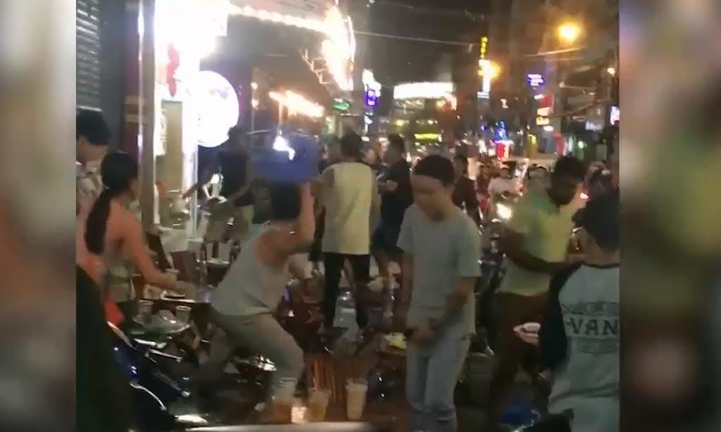 Theo đó, sáng 12/6 có 1 đoạn clip phát tán trên mạng xã hội ghi nhận cảnh đánh nhau giữa 1 nhóm người và 2 nhân viên của quán nhậu trên đường Bùi Viện. Đoạn clip cho thấy, nhóm khách và nhân viên quán nhậu ẩu đả bằng các vật dụng như bàn, ghế… bên lề đường. Sau đó 2 nhân viên quán nhậu còn cầm chổi, gậy lao qua tấn công nhóm khách.