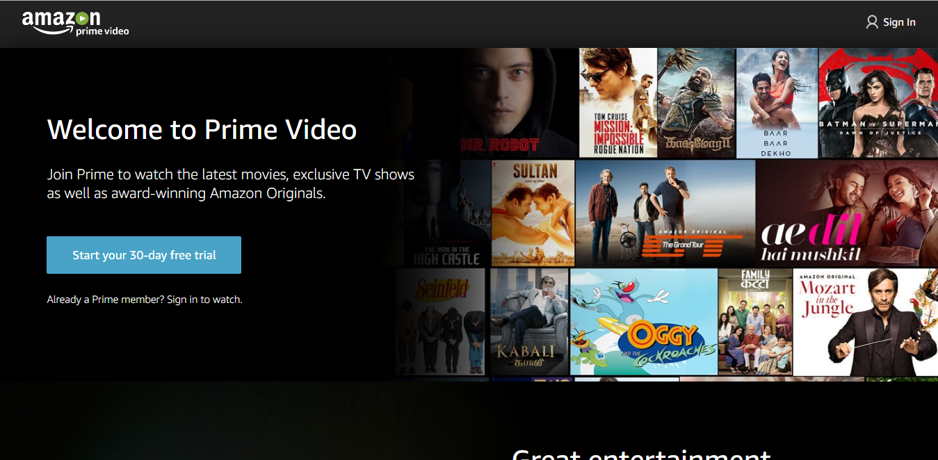 Amazon Prime Video là một trong những lựa chọn thay thế Netflix tốt nhất. Nó cung cấp nhiều bộ phim và chương trình truyền hình nổi tiếng, và có chương trình gốc tuyệt vời. Các chương trình nổi bật là The Marvelous Mrs. Maisel, The Man In The High Castle và Tom Clancy’s Jack Ryan,... Nếu bạn là một thành viên trả phí của Amazon, dịch vụ Prime Video đã được bao gồm trong đăng ký của bạn. Amazon Prime có giá $12,99 mỗi tháng (khoảng 300 ngàn đồng) và bao gồm vận chuyển miễn phí trên một loạt các sản phẩm được bán bởi nhà bán lẻ, dịch vụ Amazon Prime. Amazon Prime Video cũng có sẵn dưới dạng dịch vụ độc lập và có giá $8,99 ( khoảng 200 000 đồng) mỗi tháng.