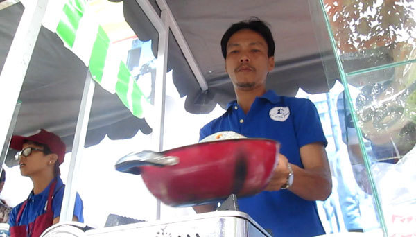 Nguyên liệu chế biến thức ăn tại phố hàng rong phải có nguồn gốc rõ ràng, đảm bảo an toàn vệ sinh thực phẩm.![]() Người bán hàng là những hộ nghèo của quận 1 ![]() ![]() Khách hàng chờ mua đồ ăn sáng trong ngày khai trương |