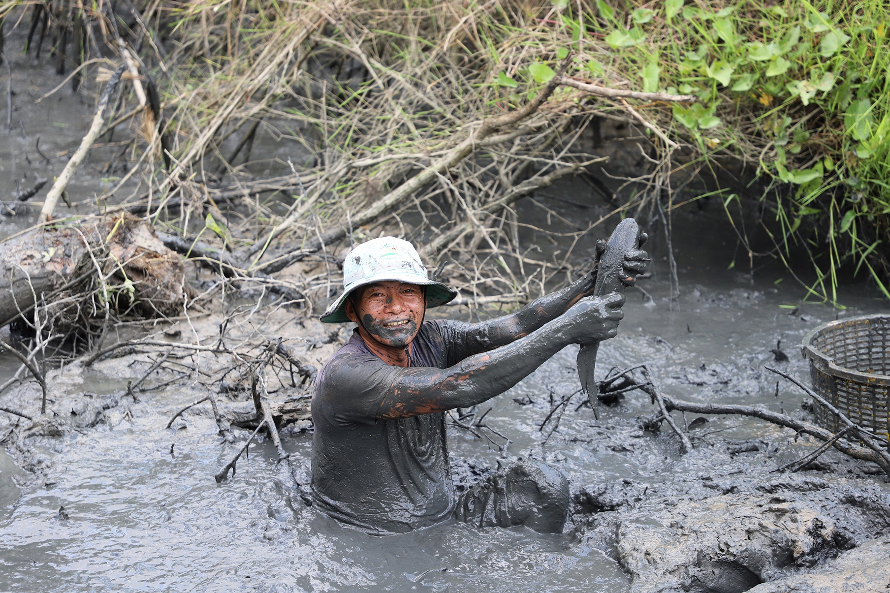 Trong số những người tham gia, anh Minh (ngụ xã Bình Minh) là tâm điểm chú ý khi kéo lên bờ con cá "khủng" gần 18kg. “Tôi bơi ra ngay khi đập vừa đóng. May mắn năm nay mới bắt được cá to,” anh Minh chia sẻ.