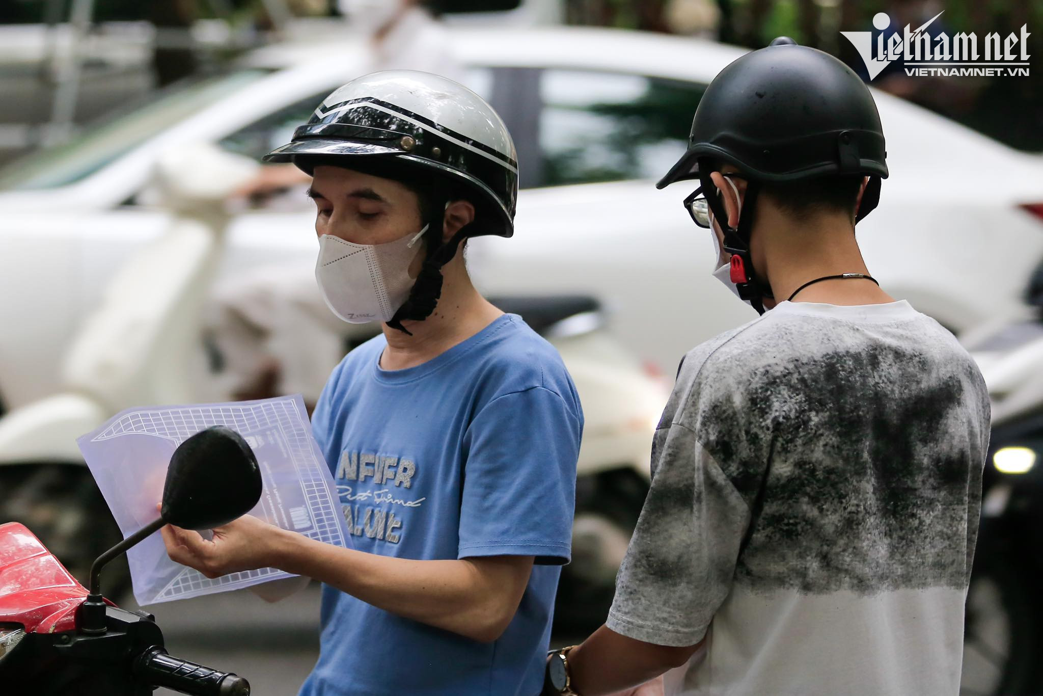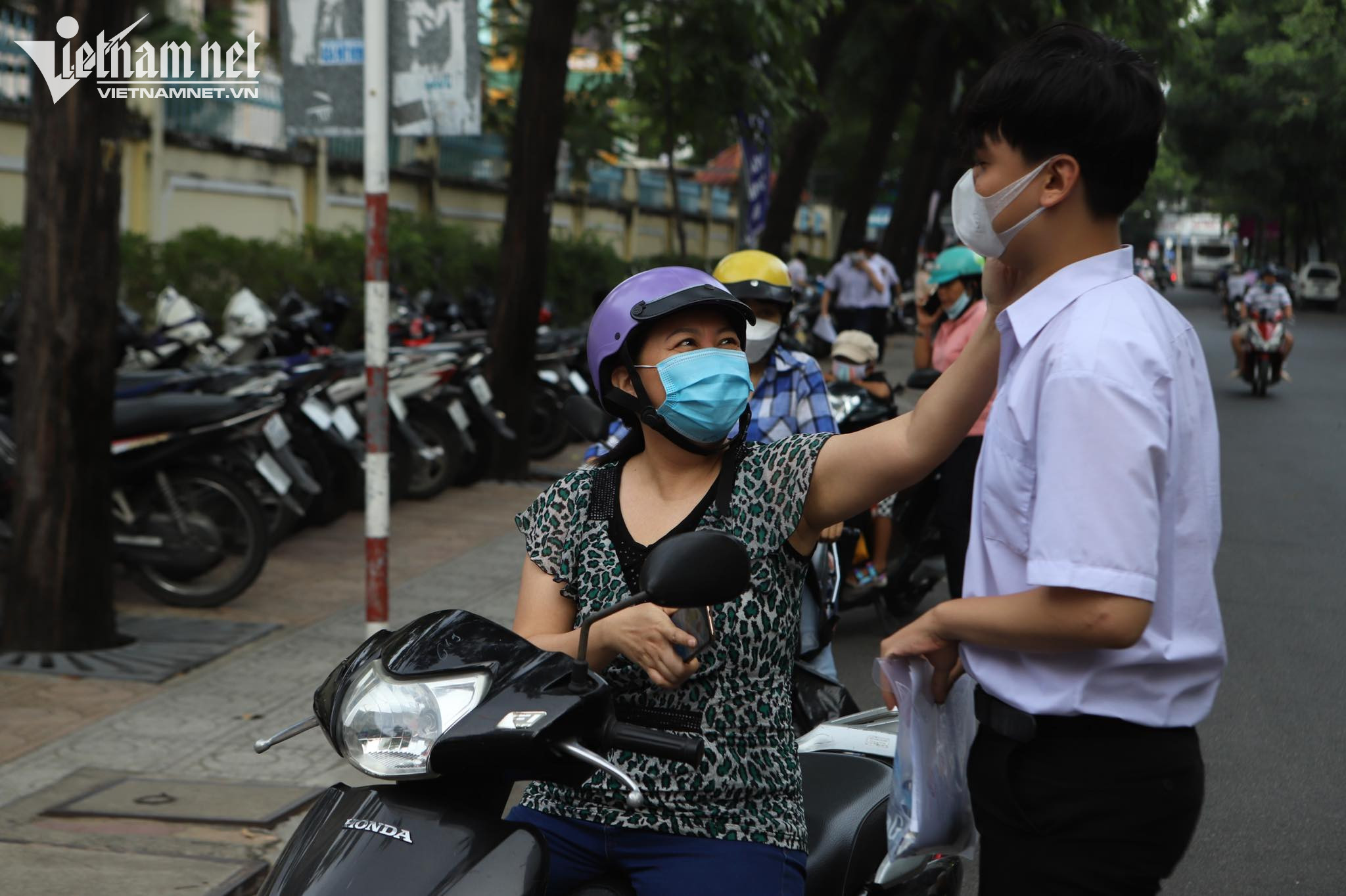 Tại điểm trường THPT Phan Đình Phùng. Anh Giáp luôn miệng nhắc con kiểm tra lại giấy tờ và 1 số dụng cụ học tập cần thiết cho buổi thi hôm nay. Ảnh: Tuấn Anh
