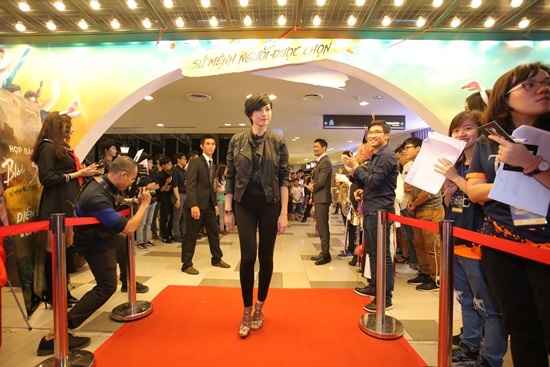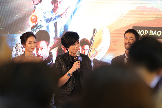 ứ diễn viên Ngô Thanh Vân xuất hiện tại buổi họp báo với mái tóc ngắn.