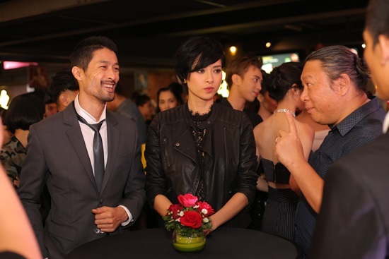 Cô và diễn viên hành động Johnny Trí Nguyễn vui vẻ trò chuyện cùng quan khách.