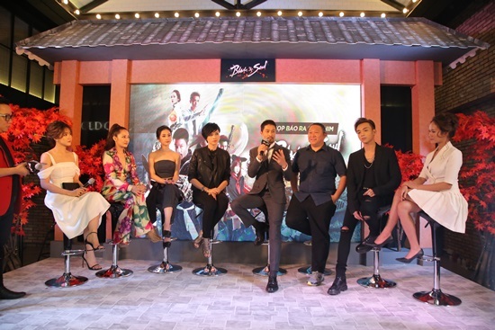 Dàn diễn viên trong phim và đạo diễn Hàm Trần hội ngộ trong buổi họp báo.