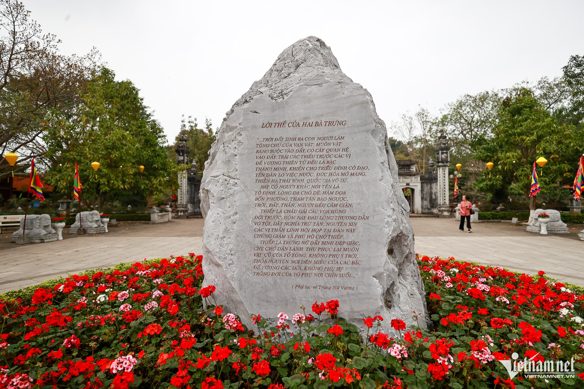 “Sau này, mỗi khi kể về hình ảnh bà Trưng Trắc để tang chồng không áo rũ, phục sức diệt quân thù, hầu hết du khách đều rưng rưng xúc động” - chị Quyên là hướng dẫn viên của Ban quản lý Di tích Lịch sử Quốc gia đặc biệt đền Hai Bà Trưng Mê Linh cho biết.