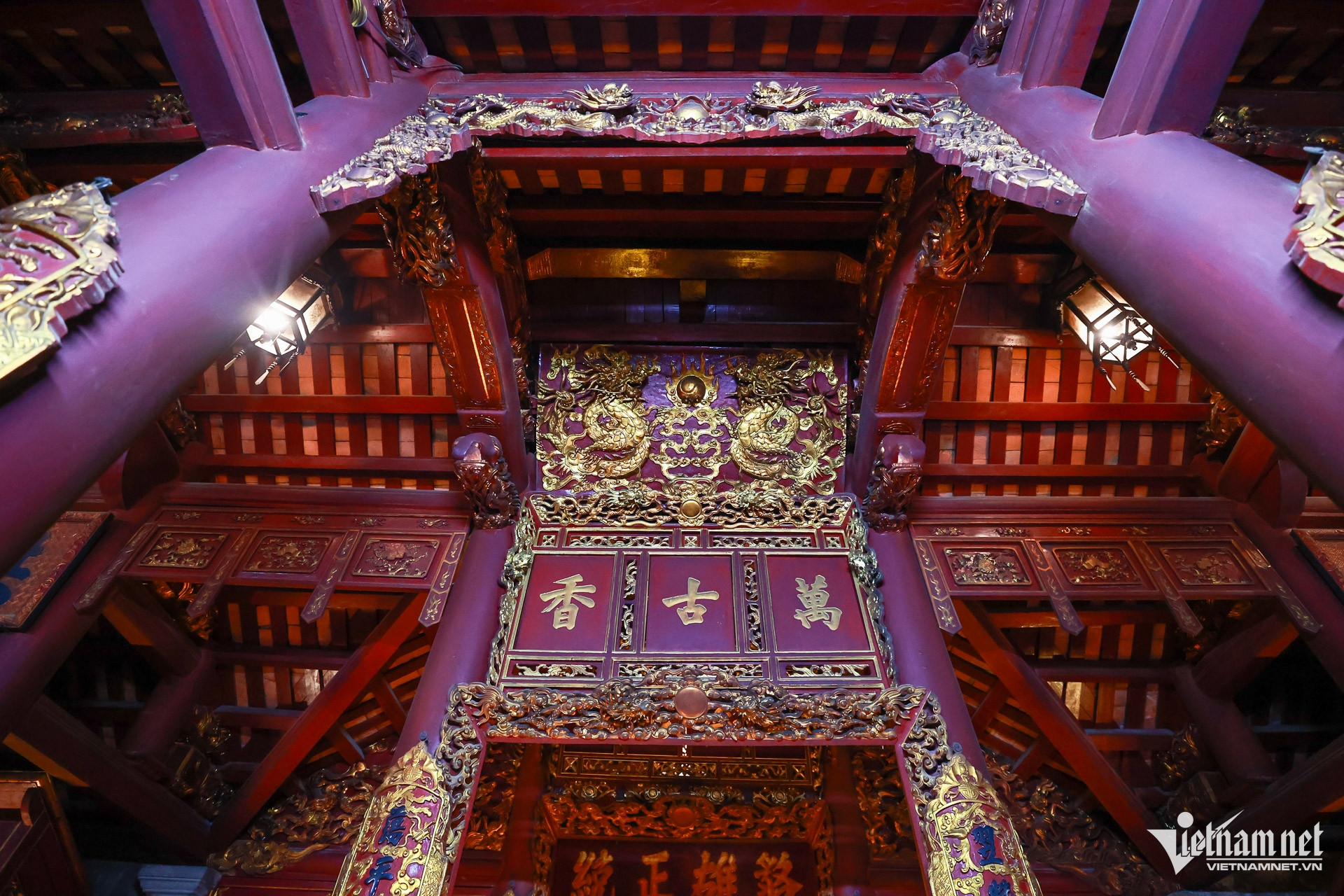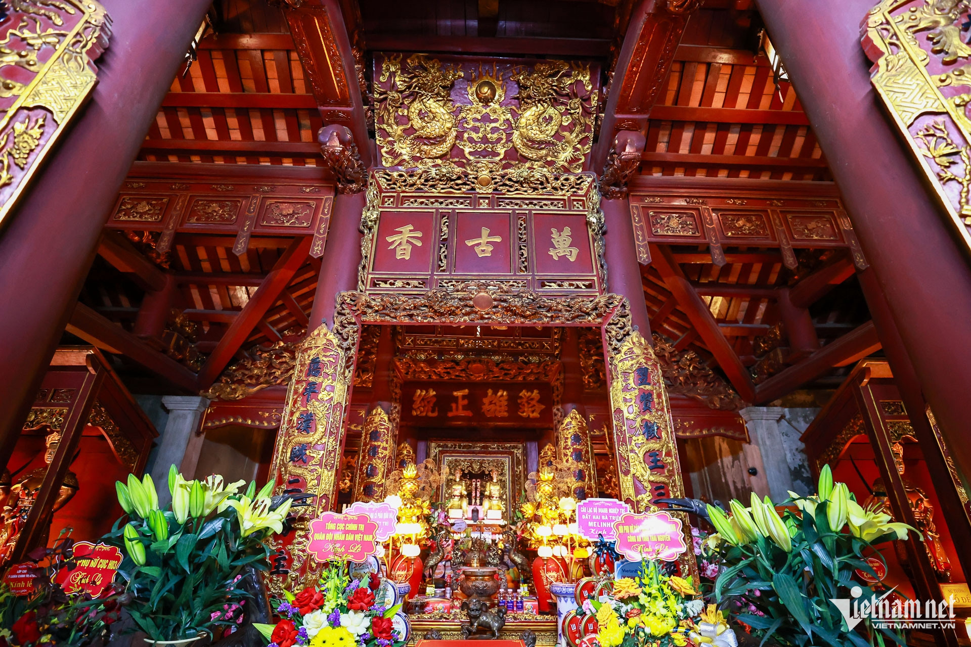 Tam tòa chính điện và các đền thờ hai phía tả, hữu là những kiến trúc bằng gỗ lim được chạm trổ họa tiết sinh động và tinh tế. Tượng thờ, nội thất, hoành phi, câu đối được sơn son thếp vàng hài hòa, lộng lẫy và trang nghiêm.