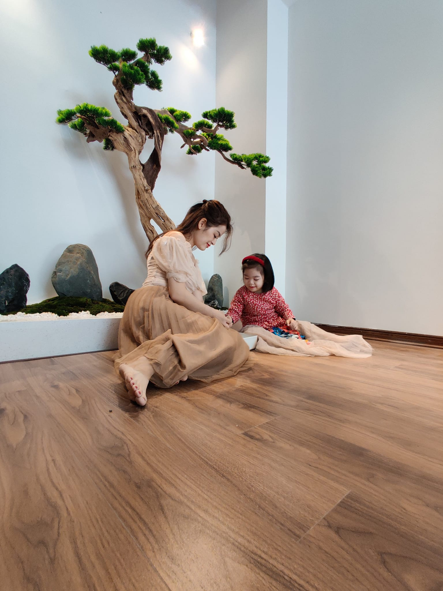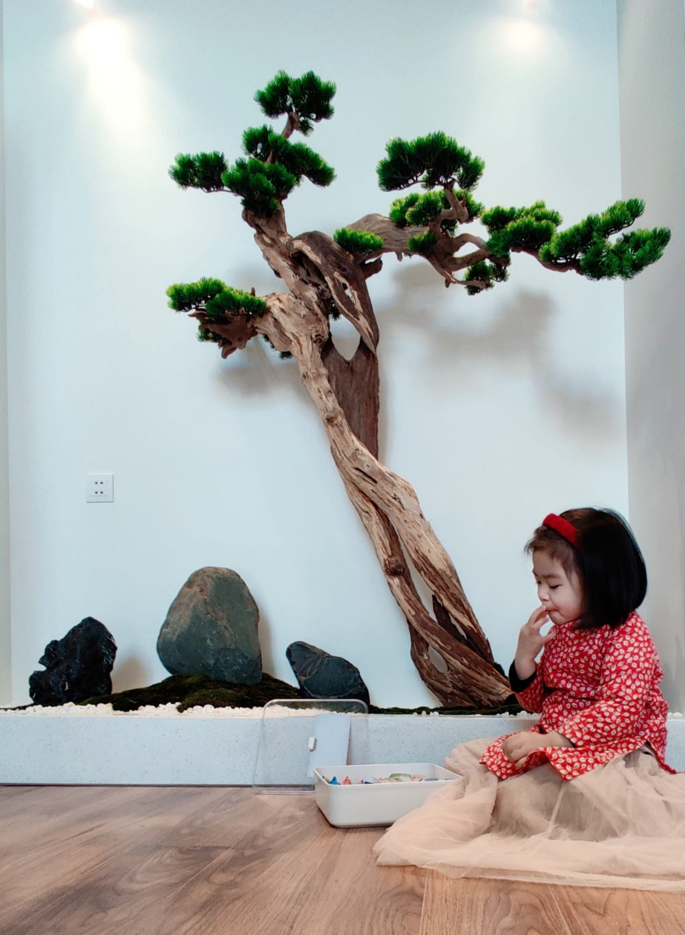 Phòng sinh hoạt chung có tiểu cảnh sinh động, hút được gió từ giếng trời mát lịm.