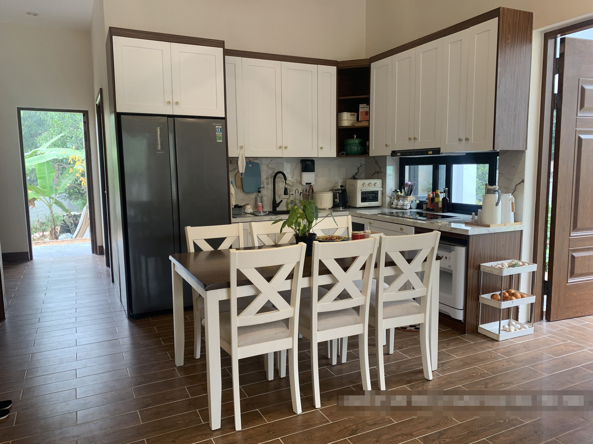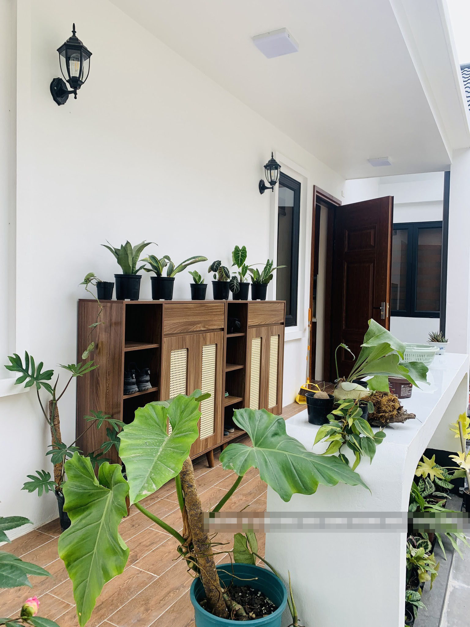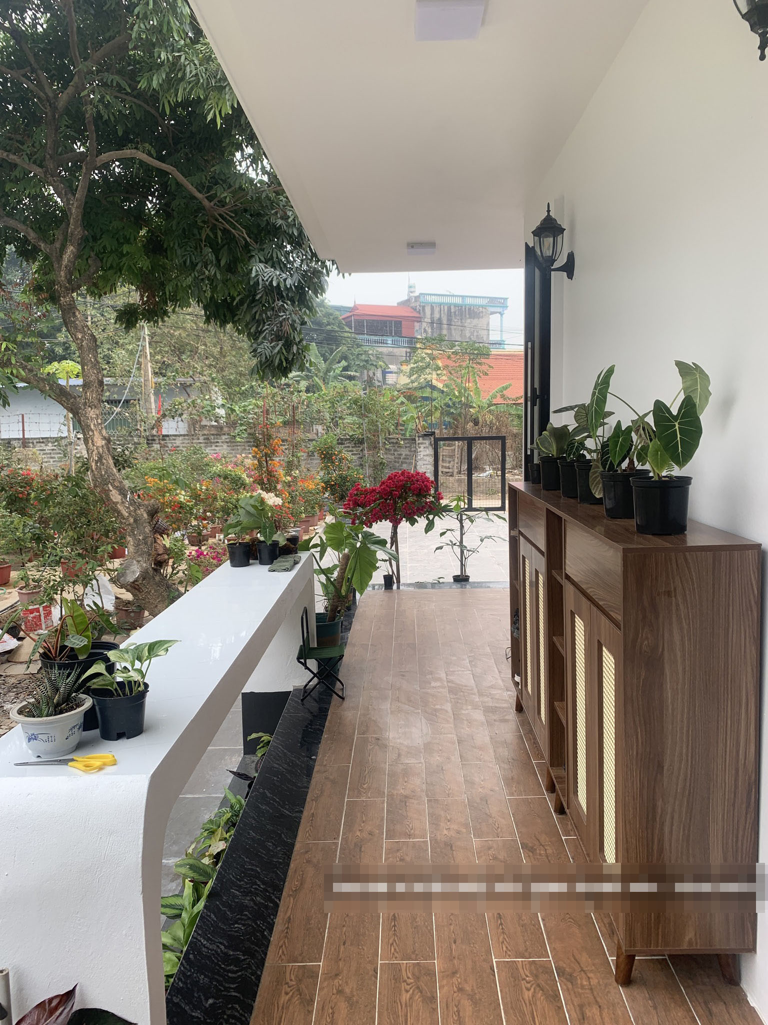 Nhà không thiết kế quá cầu kỳ, thiên về sự đơn giản và gần gũi thiên nhiên, nhiều ánh sáng. Vợ chồng anh thích những khoảng sân rộng rãi để cùng con chơi đùa, cho con những trải nghiệm ấm cúng dưới mái nhà thân yêu. Đặc biệt, với người làm trong lĩnh vực thiết kế như anh, rất cần không gian để tái tạo cảm xúc và năng lượng. Vì vậy, ngôi nhà còn có thêm góc chill, uống trà và thư giãn bên hiên.