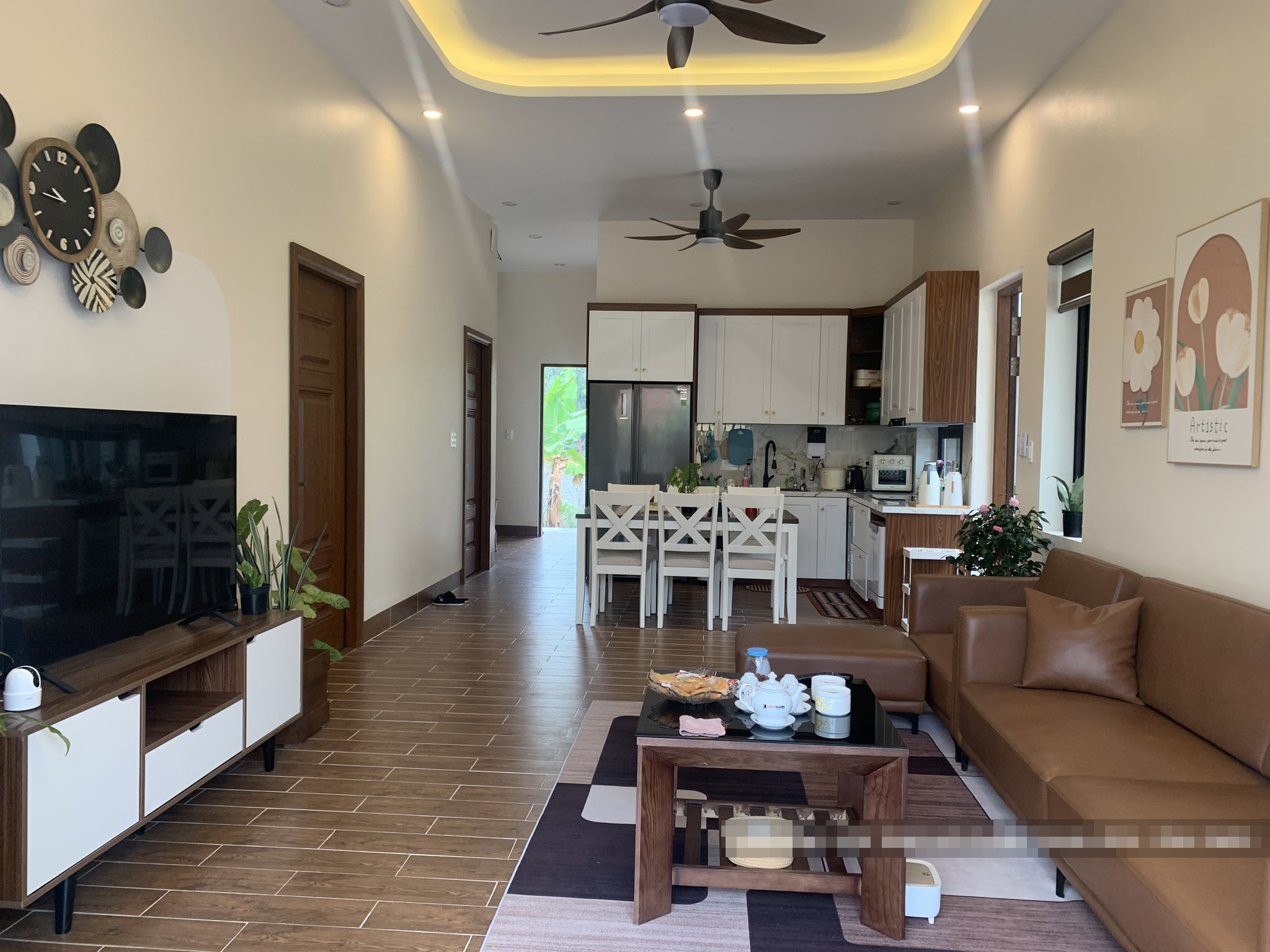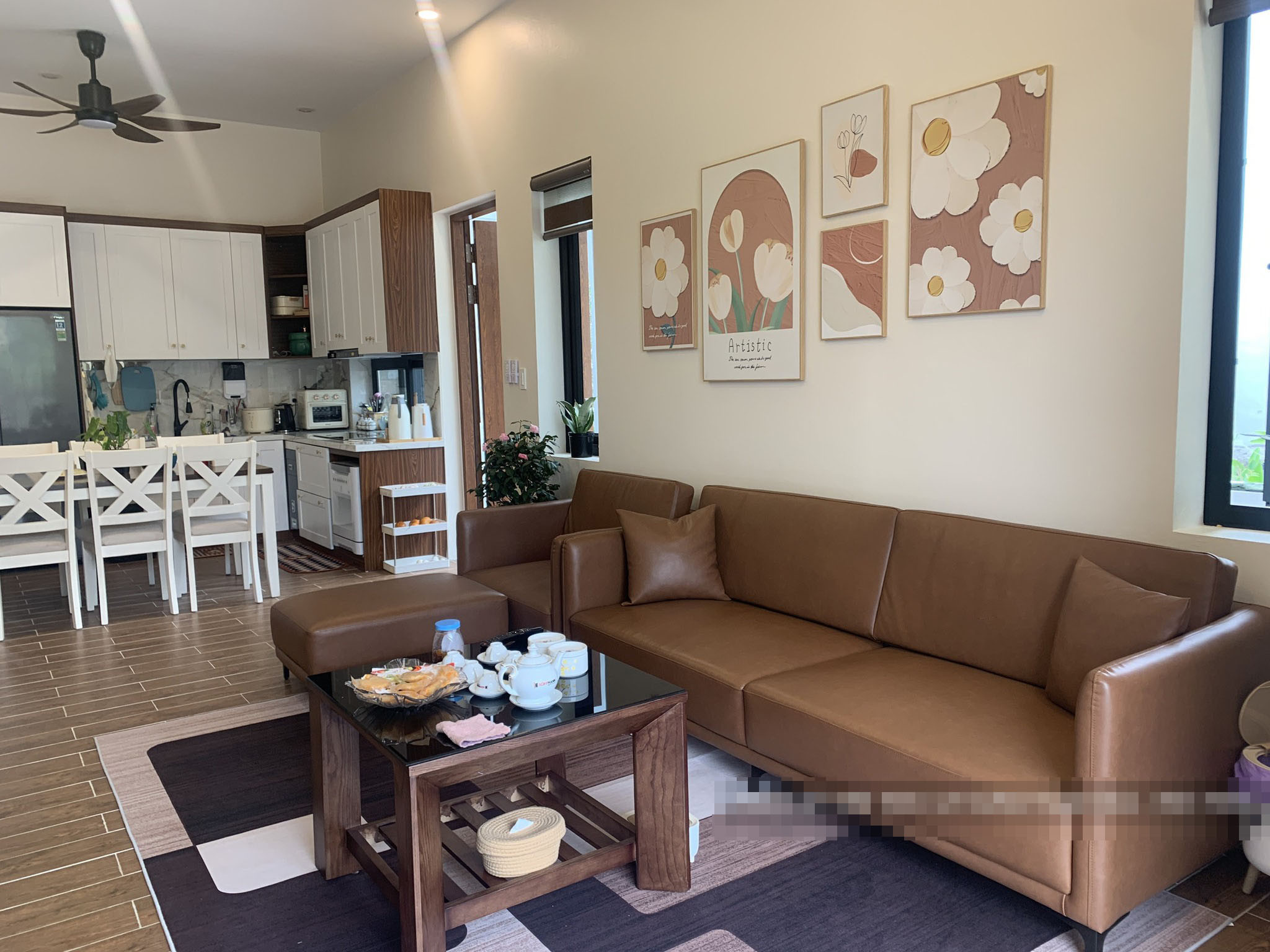 Phòng khách thông với bếp tạo không gian thoáng và liền mạch, dễ tiếp cận.