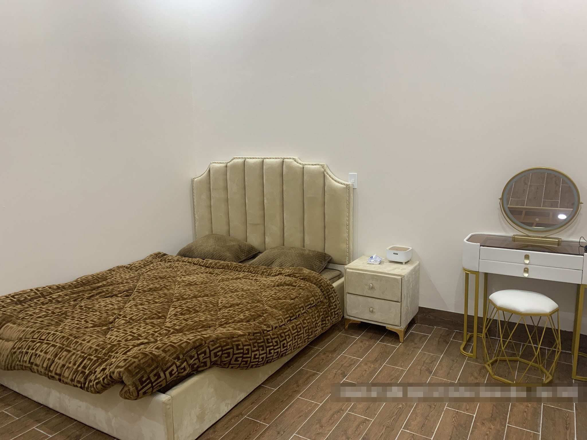 Phòng ngủ tối giản, chỉ có giường và bàn trang điểm, tủ quần áo nhằm tối ưu không gian sử dụng, tạo khoảng không thoáng đãng khi nghỉ ngơi.