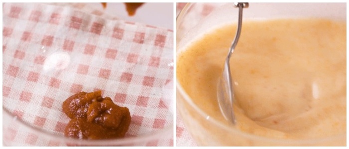 Cho nước cốt dừa, sốt Tom Yum, nước mắm, đường và nước vào tô, trộn đều và để riêng.