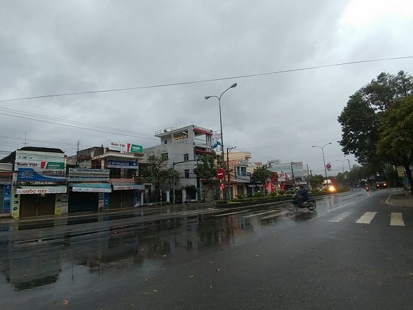 Thành phố Cam Ranh lúc 6h sáng, trời nhiều mây, mưa và gió nhẹ