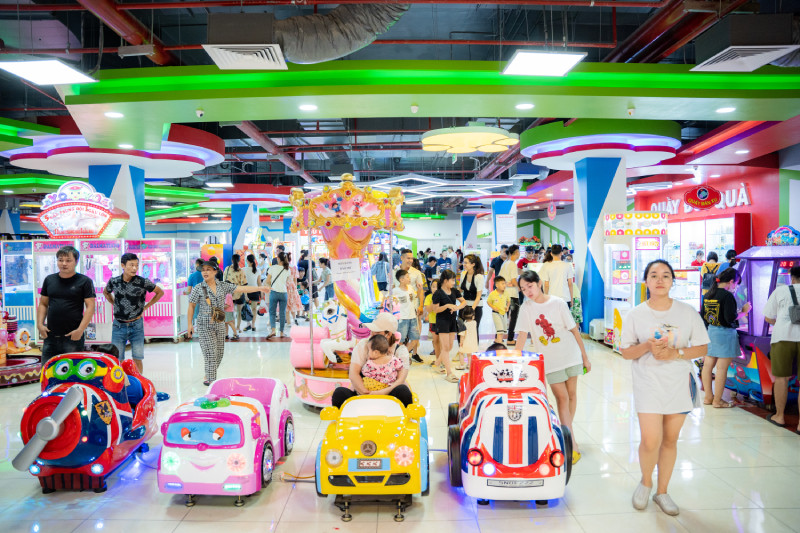 Khu vui chơi trẻ em sôi động, náo nhiệt ngay từ đầu giờ sáng. Các bạn nhỏ hào hứng với các trò chơi thú vị, hấp dẫn. Các nhóm bạn trẻ cũng tận dụng ngay cơ hội giải trí tại các Game Center hoặc cày dàn phim Tết hấp dẫn khi CGV, BHD, Lotte Cinema đều đã mở cửa. Khu bán vé trượt băng của Vincom Ice Rink - Mega Mall Royal City cũng đông nghịt người ra vào.