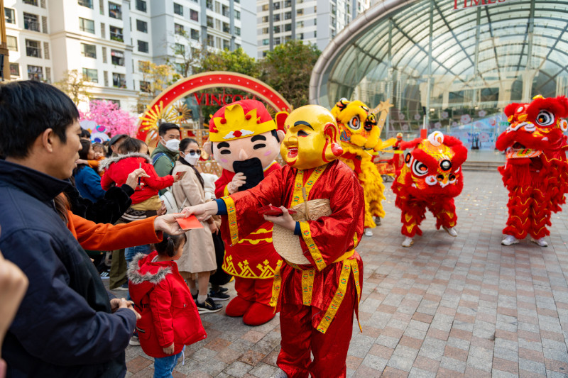 Tại các TTTM Vincom Mega Mall, đoàn diễu hành với ông Phúc - Lộc - Thọ mang không khí náo nhiệt tưng bừng lan tỏa khắp các gian hàng, trong khi tại các Vincom Plaza, khách hàng hào hứng kéo nhau tới xin chữ thầy đồ, nhận lộc đầu xuân.