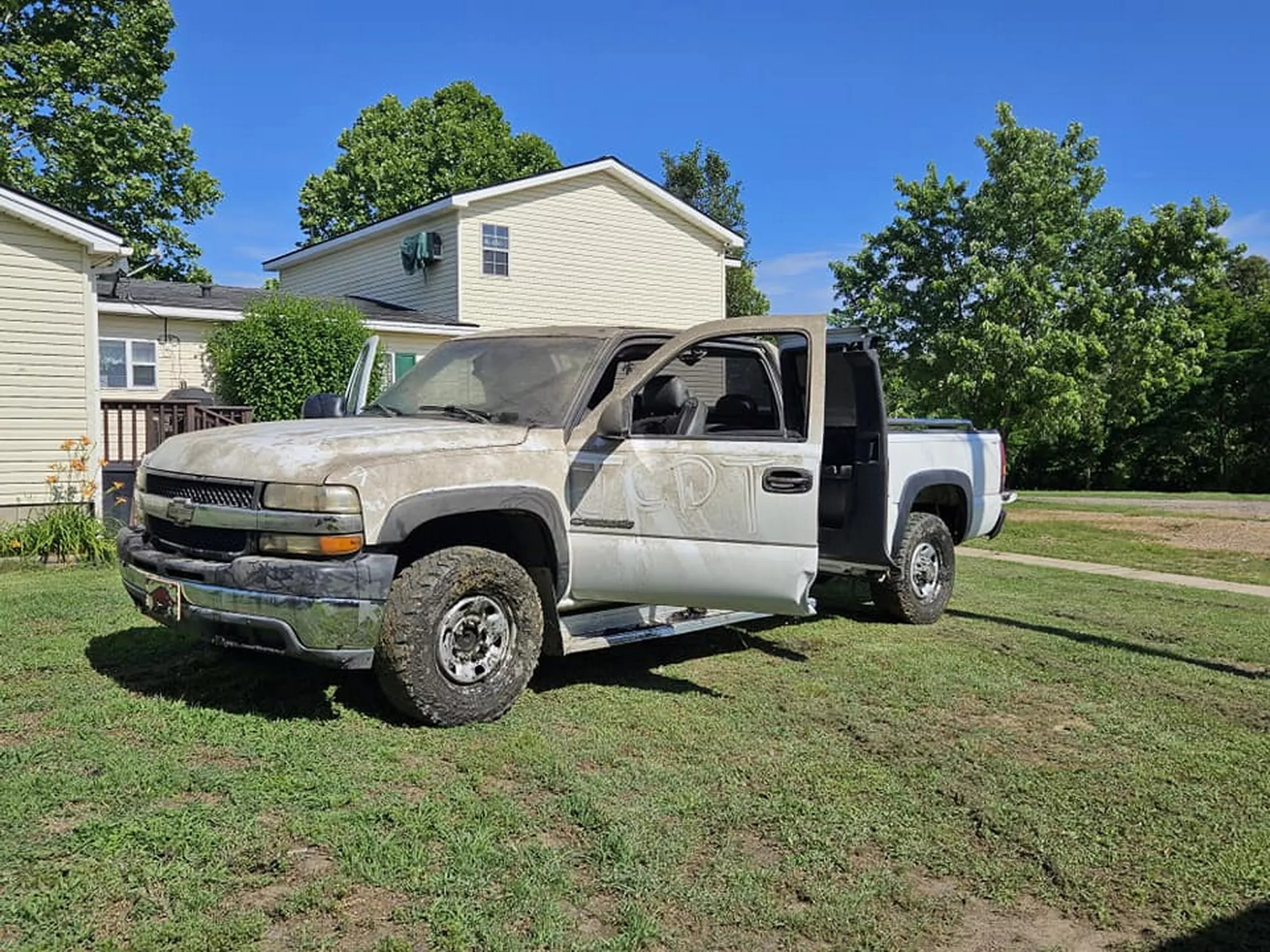 Anh đã quyết định chọn mua chiếc Chevrolet Silverado HD 2002 từ một người bán ở thành phố Fayetteville. Kris cho biết, mặc dù xe đã đi được hơn 300.000km nhưng nó vẫn hoạt động rất ổn định. Đáng tiếc là không lâu sau, chiếc xe bán tải đã lao thẳng xuống ao trong một sự cố ngoài ý muốn.