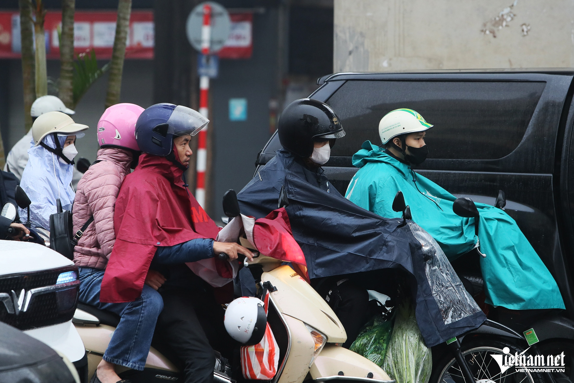 Anh Nguyễn Toàn (Thanh Oai, Hà Nội) cho biết, nhiệt độ ngoài trời giảm và có mưa nên khá rét. Việc đi xe máy trong trời mưa, đường trơn khá khó khăn.