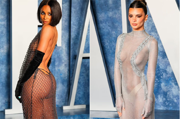 Người đẹp chuyển giới Hunter Schafer gây sốc trên thảm đỏ tiệc hậu Oscar khi chọn chiếc đầm satin màu bạc đuôi dài. Người đẹp 25 tuổi che ngực bằng một chiếc lông cột vào sợi dây buộc ngang vòng 1. Đây là thiết kế mới nhất trong bộ sưu tập Thu/Đông 2023 của thương hiệu Ann Demeulemeester.