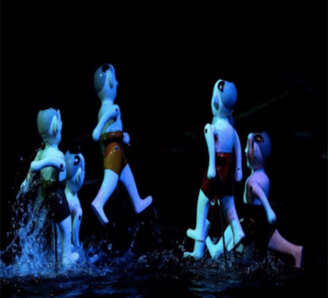 Chương trình nghệ thuật chia làm 2 phần. Phần 1 là các tiết mục múa rối: Tễu giáo trò, Múa rồng, Em bé chăn trâu thổi sáo... với sự tham gia của NSƯT Thanh Hiền, NSƯT Đức Hùng, NSƯT Lê Thu Huyền...