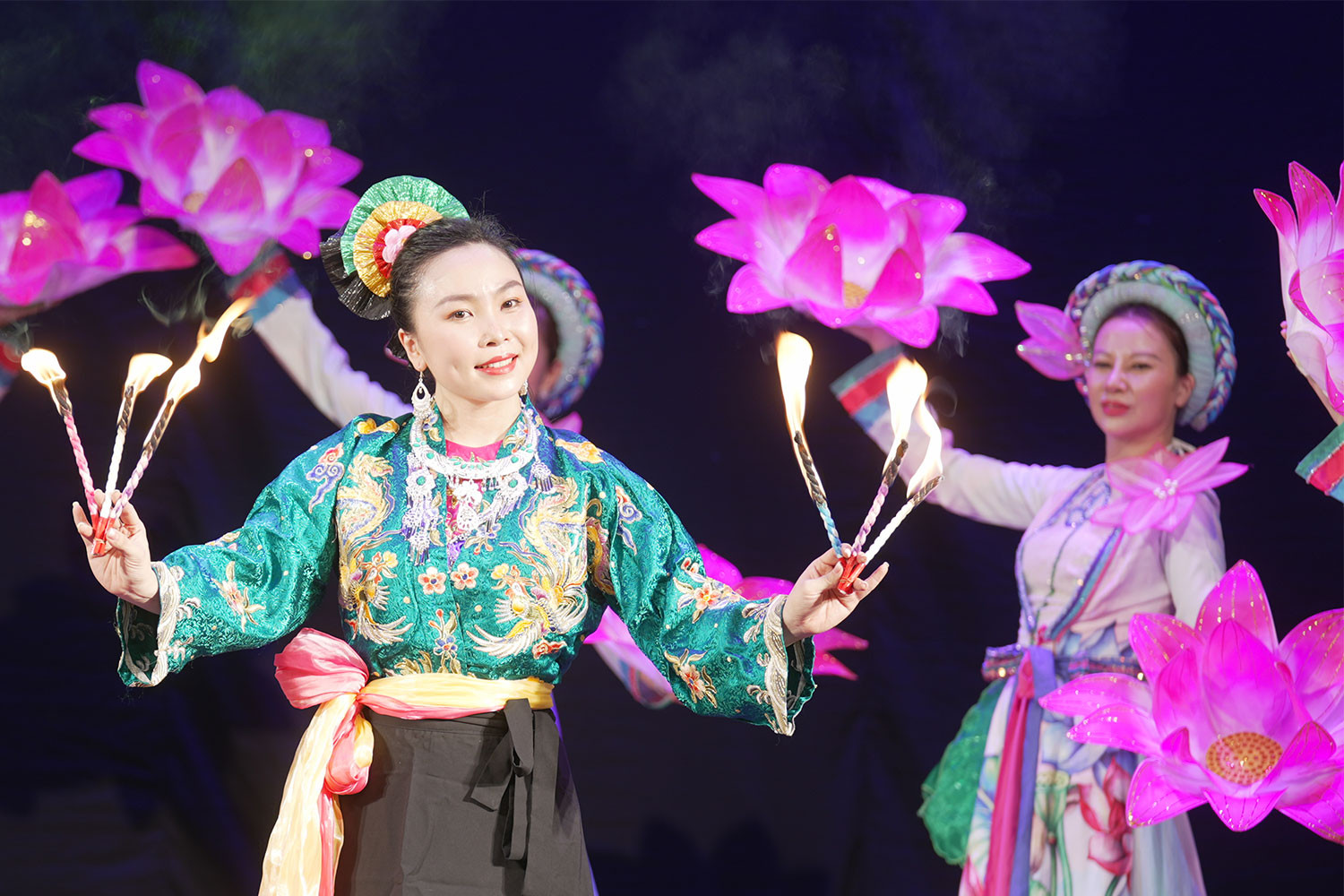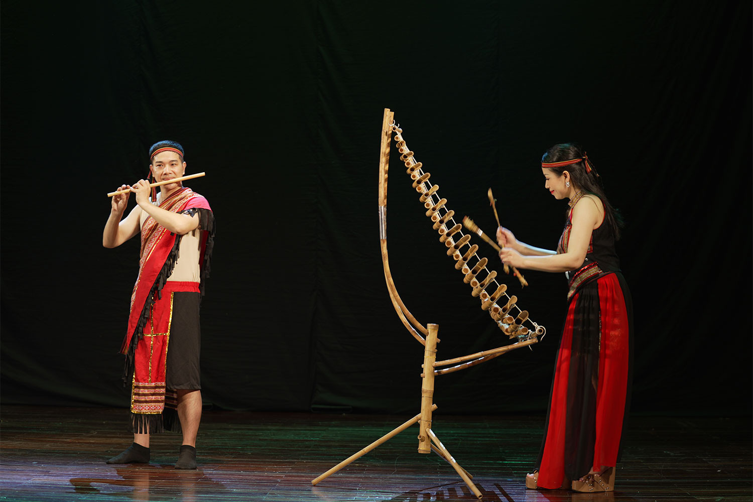 Phần 2 là chương trình ca múa nhạc dân tộc: múa rối và đàn bầu Việt Nam gấm hoa (ca sĩ Huyền Trang cùng tốp nam nữ), Hoa ban đỏ (Trần Hậu và tốp nam nữ), Cô bé thượng ngàn (Mai Hiên), hòa tấu T’rưng - Krongput Mùa xuân đến - Cánh chim báo tin vui (Huyền Trang, Lan Anh, Trần Hậu)...