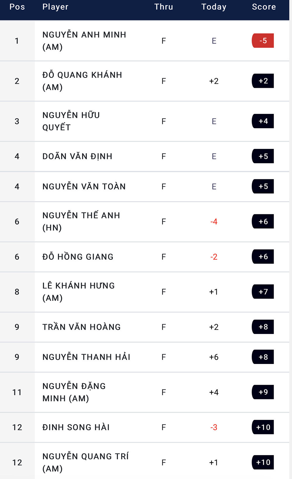 Anh Minh bước vào ngày thi đấu cuối với tâm lý khá tự tin, thoải mái. Dù có tới 2 điểm double bogey, nhưng với việc ghi tới 6 birdie, Anh Minh hoàn thành ngày thi đấu với điểm Even Par, qua đó đăng quang bảng nam giải vô địch golf Quốc gia 2022 - Cúp VinFast với tổng điểm -4.