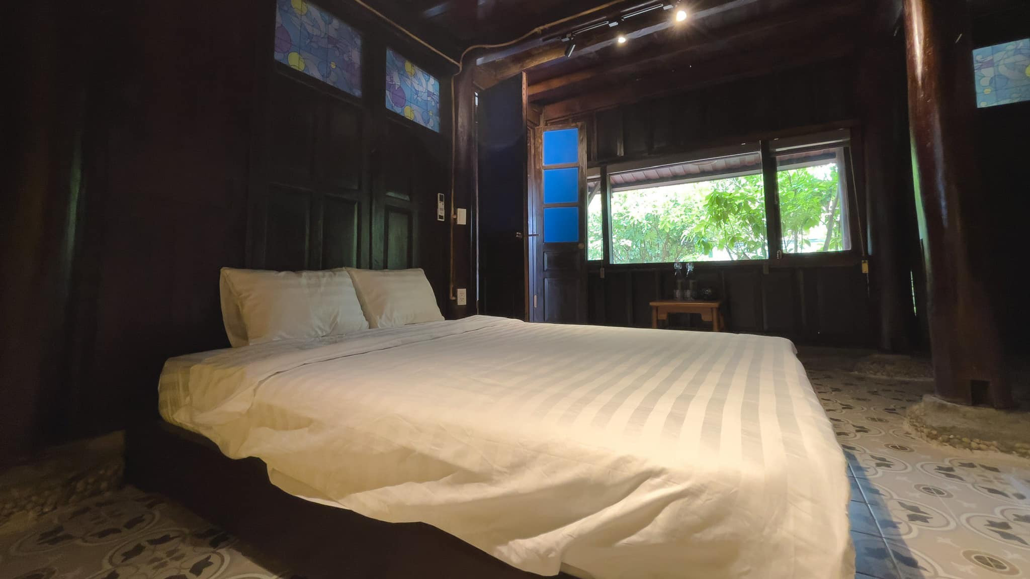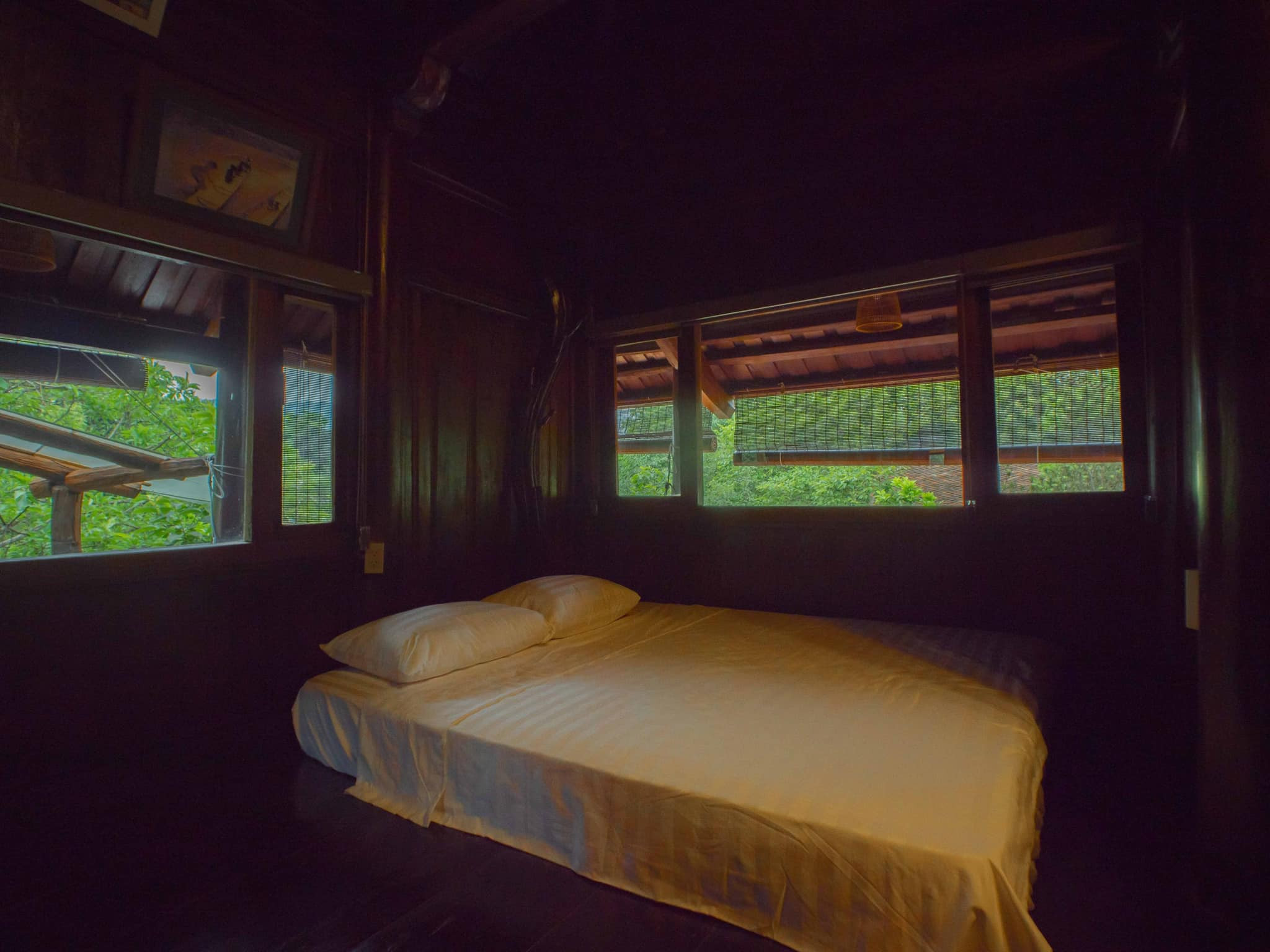 Khu vực ngủ có view nhìn ra vườn và đồi núi trập trùng.