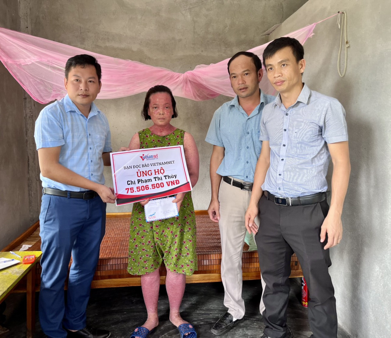 Cũng trong ngày 27/11, sau khi biết được hoàn cảnh khó khăn của chị Thuỷ, một số độc giả tại TP Huế đã về nhà của chị để trao số tiền 3 triệu đồng ủng hộ người phụ nữ khó khăn này.