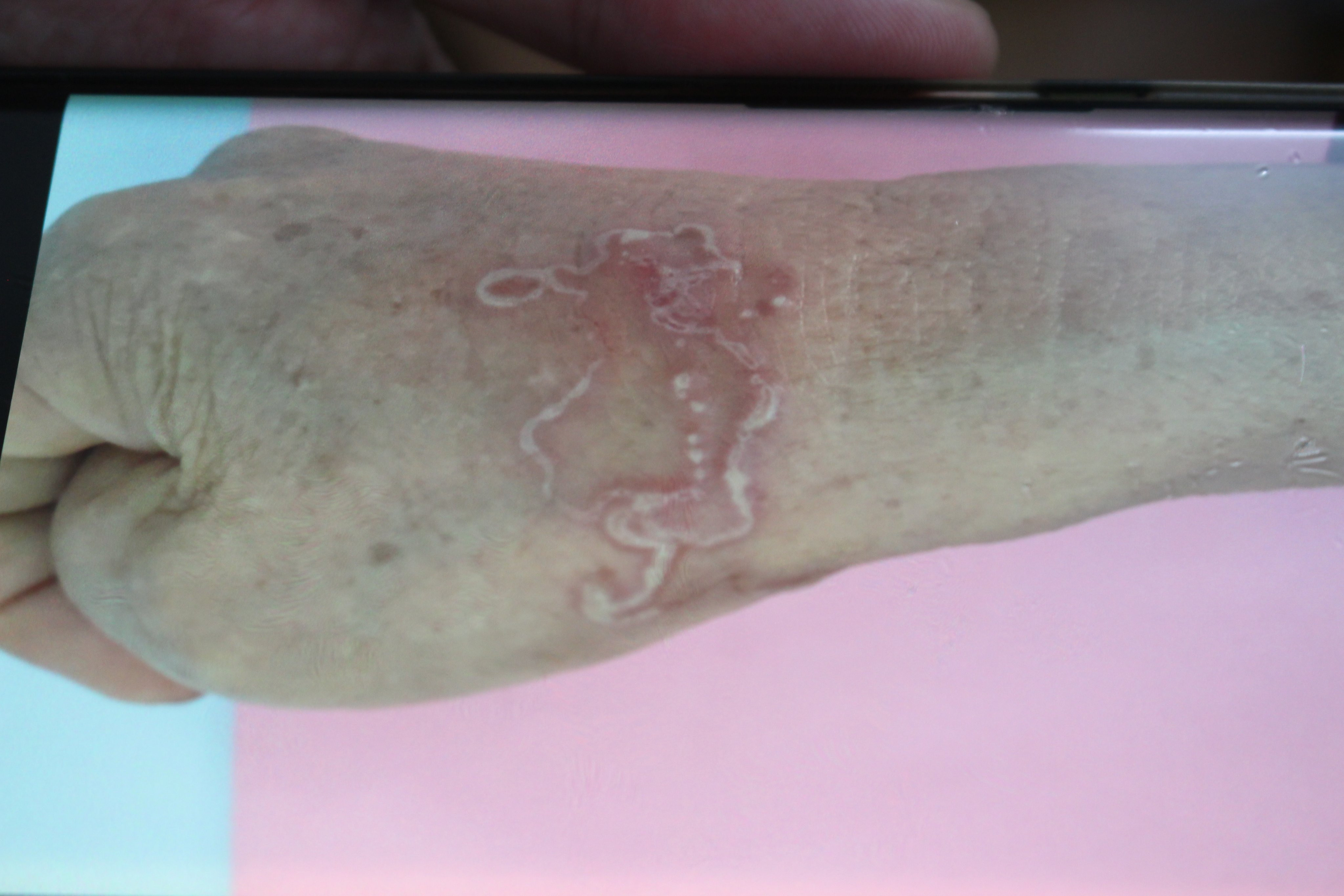 Bà B.T.T (55 tuổi, trú tại Hà Nội) sau buổi làm cỏ ở vườn xuất hiện điểm ngứa ở mu bàn tay. Ban đầu chỉ là các nốt, ngày hôm sau, hình thành đường ngoằn ngèo trên bàn tay. Bệnh nhân đi khám ở tuyến huyện nhận kết luận do nhiễm ký sinh trùng sau đó đến Bện viện Đặng Văn Ngữ thăm khám.