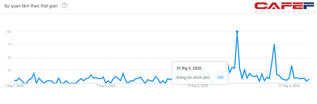 Lượng tìm kiếm tiếp tục duy trì và sau đó đạt đỉnh trong 3 ngày từ 3-5/4 và giảm trở lại mức thông thường vào ngày 6/4.