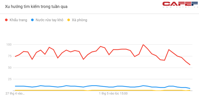Trong số các nhu yếu phẩm để phòng dịch, "khẩu trang" là từ khóa được tìm kiếm ở Việt Nam nhiều nhất, sau đó đến "nước rửa tay khô" và cuối cùng là "xà phòng".