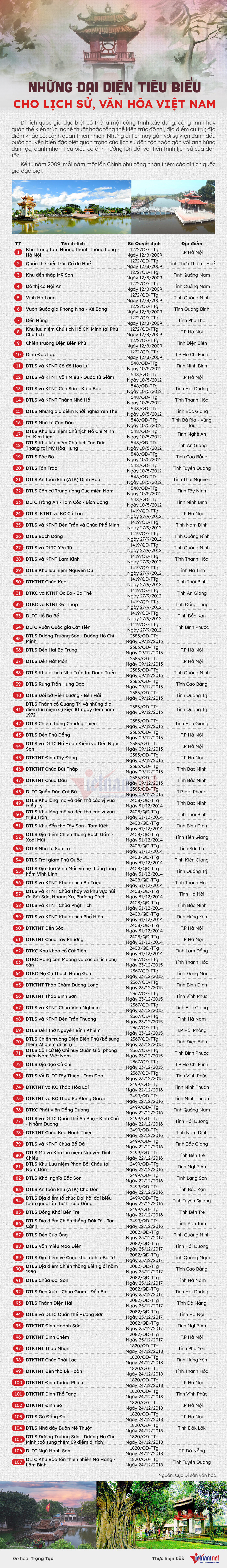 Những di tích này gắn với sự kiện đánh dấu bước chuyển biến đặc biệt quan trọng của lịch sử dân tộc hoặc gắn với anh hùng dân tộc, danh nhân tiêu biểu có ảnh hưởng lớn đối với tiến trình lịch sử của dân tộc.