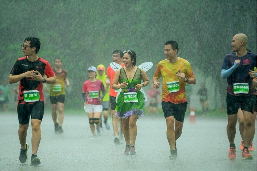 Cơn mưa rào đầu hạ trút xuống bất ngờ như tô điểm thêm cảm xúc trong những khung hình được chụp sáng nay. Bước chạy có thể chậm đi nhưng các runner vẫn tiến về đích với tinh thần không bỏ cuộc.
