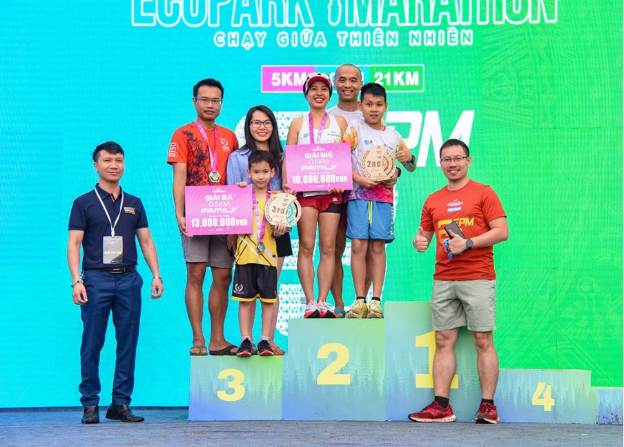 Ecopark Marathon 2023 diễn ra đúng ngày Giỗ Tổ Hùng Vương (29/4). Đường chạy kết thúc lúc 10h, để lại nhiều cảm xúc cho người tham gia. Ban tổ chức tiến hành trao hàng chục giải thưởng cho VĐV thành tích cao. Nhà vô địch nam, nữ 21km nhận 36 triệu đồng; với 10km là 19 triệu đồng; các nội dung trẻ em, cặp đôi và gia đình cũng nhận giải thưởng giá trị.