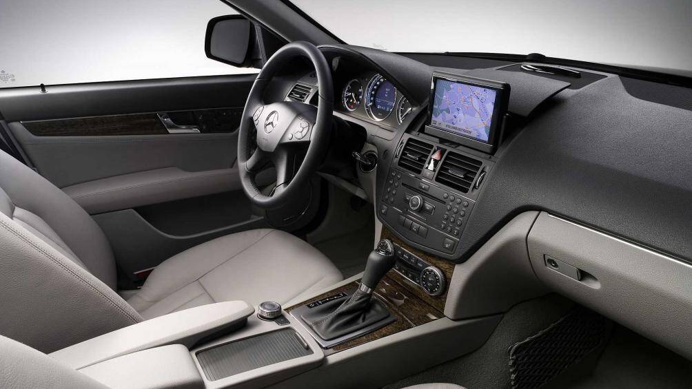 Các trang bị trên một chiếc C200 đời 2007-2008 khá đầy đủ với đèn chiếu sáng bi-xenon, rửa đèn, các chi tiết ốp nhôm phay trong cabin, ghế chỉnh điện hoàn toàn có nhớ 3 vị trí, rèm chỉnh điện và đặc biệt là hệ thống âm thanh cao cấp Harman Kardon Logic 7. Tính năng an toàn cao với 8 túi khí xung quanh xe, cân bằng điện tử, cảm biến đỗ trước/sau…
